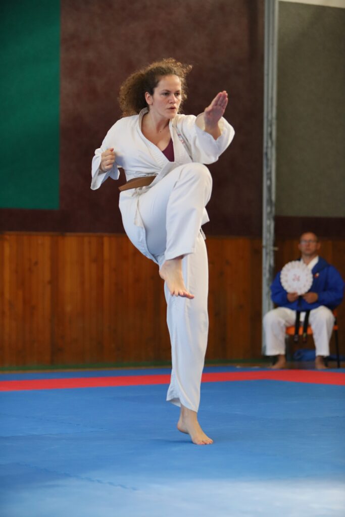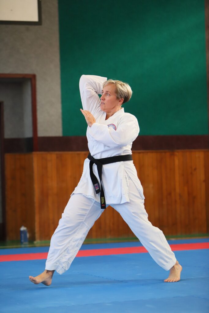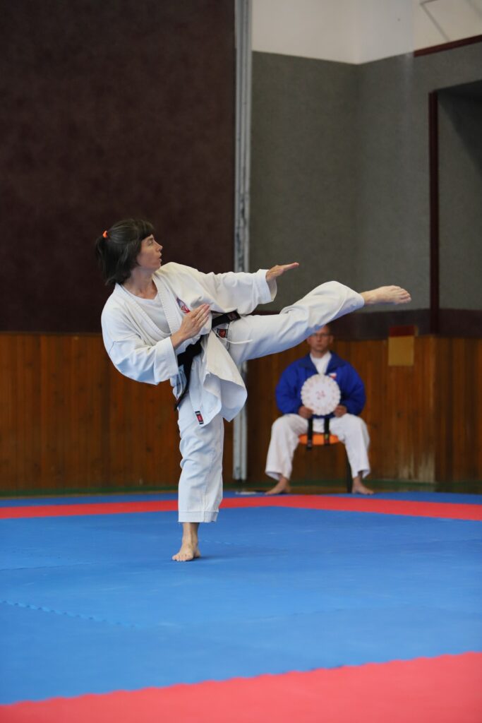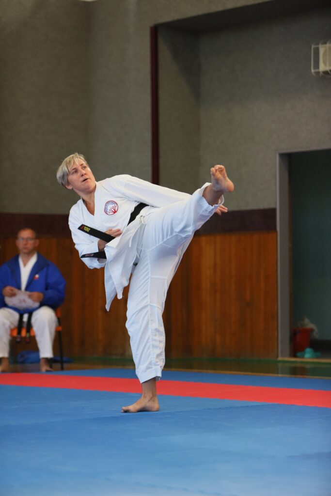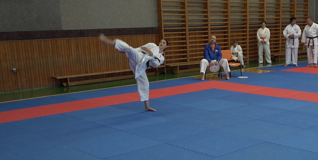 Druhou závodnicí byla Alena Bajerová z oddílu Zábřeh na Moravě, favoritka této kategorie. A skutečně formu Primu vystřihla jedna báseň. Forma Secunda byla technicky skvělá, včetně bojového nasazení a dynamiky. Tohle posunulo kvalitativně laťku ostatním trochu výše. V další formě Terca se objevilo jedno malinké zaváhání, které ovšem ostřílená závodnice dovedně kompenzovala a necvičené oko by si toho sotva všimlo. Kondice této závodnice je skutečně velmi vysoká a tak drží vysoké nasazení i ve formě Quarta. V poslední nejnáročnější formě Quinta jsme viděli dvě drobné chybičky, ale celá sestava byla předvedena ve vysokém nasazení s jinak perfektní technikou. Tohle je jednoznačně kandidátka na vysoké umístění.