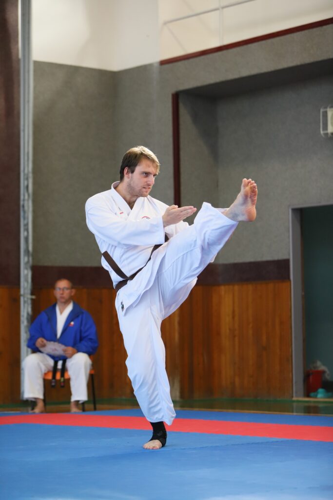 Nejsledovanější a nejočekávanější byla pochopitelně kategorie mistrů a hnědých pasů jakožto mistrovských kandidátů. Jako prvního závodníka určil los Adama Knajbla z oddílu MSK Pardubice. Hala ztichla v očekávání prvého výkonu, který nasadí laťku ostatním. Po prvé formě na něm nebyla znát žádná ztráta kondice. Až u třetí formy šlo zaznamenat prohloubené dýchání a několik drobných chybiček. U čtvrté formy nastal zlom, kdy už bylo místy znát pokles kvality techniky a v poslední formě se objevily i další drobné chyby. Celkový dojem byl ovšem skvělý. Bojové nasazení během celého výkonu umožnilo publiku stát se součástí tohoto imaginárního boje.