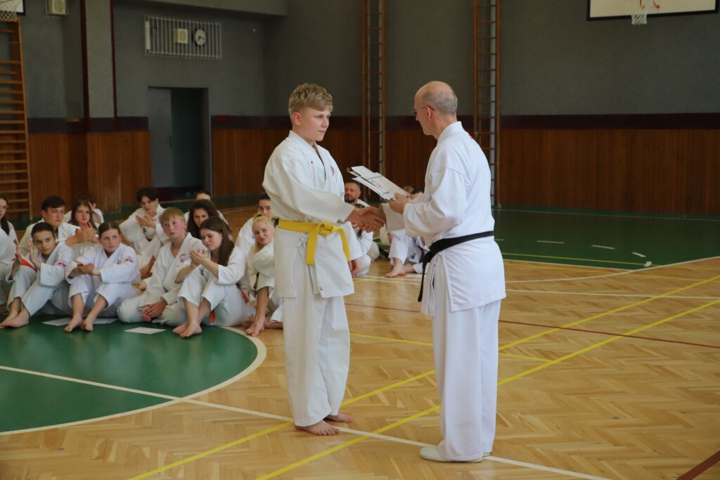 Kategorie žlutých pasů je prvou kategorií sportovního programu. Logicky lze tedy očekávat nejnižší kvalitu techniky, neboť její zvládnutí vyžaduje úsilí i čas. Bojové nasazení je také vcelku nízké, neboť závodníci se více soustředí na techniku a vlastní průběh. Pro mnohé z nich je to prvý turnaj karate v životě. Přesto se i mezi nimi najdou výjimky, které vyčnívají nad ostatními. Možná talenti, ale bez patřičného úsilí ani talent ve vyšší kategorii stačit nebude.