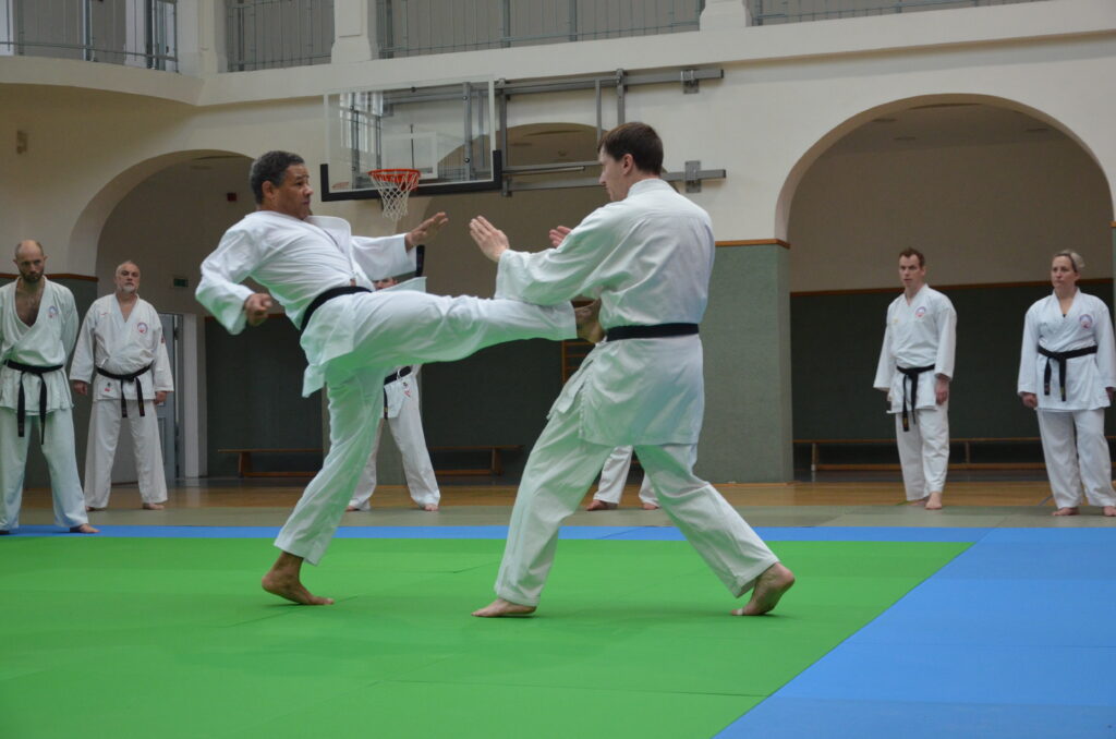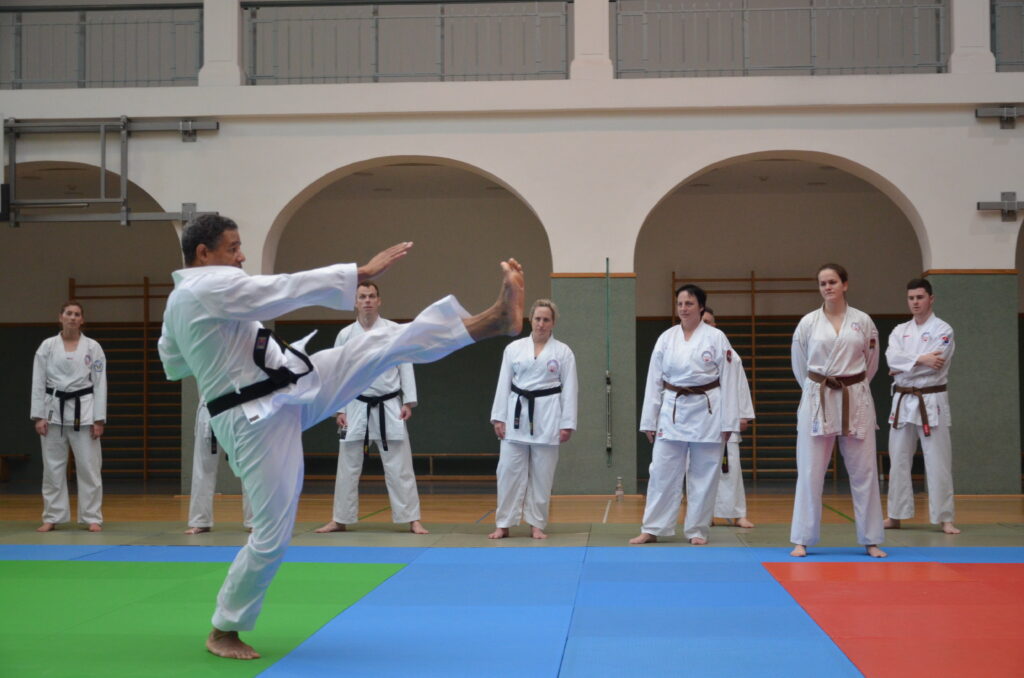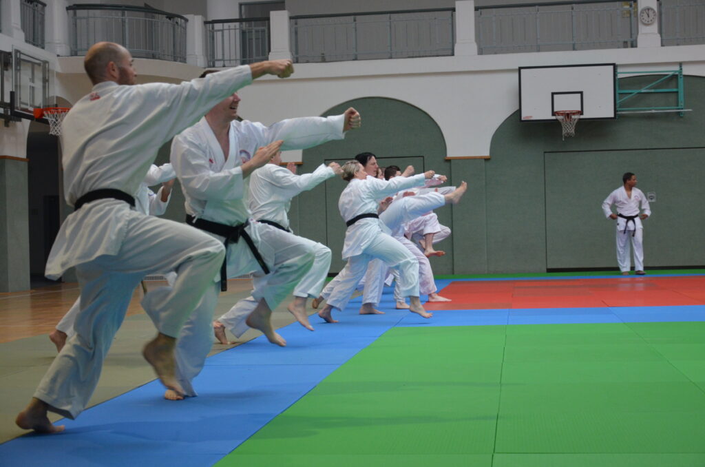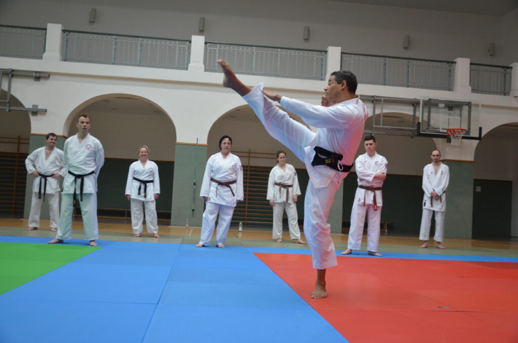 Mistr Issa D. Koité, V. Dan, vedoucí semináře, nám svým přátelským a důsledným přístupem pomohl odstranit celou řadu chyb v technikách a předal trochu svého „know-how“. Zaměřili jsme se na údery. Nejdřív hezky na zemi, poté jsme lítali vzduchem a po pár zopakovaní jsme přešli ke cvičení ve dvojicích a pracovali na kontrole úderu. „Nakousli“ jsme i obloukové kopy, pokračovali k podmetům, kdy jsme padali jako nikdy na žádném jiném semináři. Přípravou na padání byl blok pádů. Byla to zábava, protože ne každý rád padá a je to výhra nad sebou samým, když se přestanete pádů obávat. Zakončení vedla naše mistryně Kateřina Kučerová, oddíl Emeskai Vysoké Mýto, blokem jógy, který i v nadcházejících dnech moc pomohl naší regeneraci a výkonu na dalších dvou-fázových trénincích.