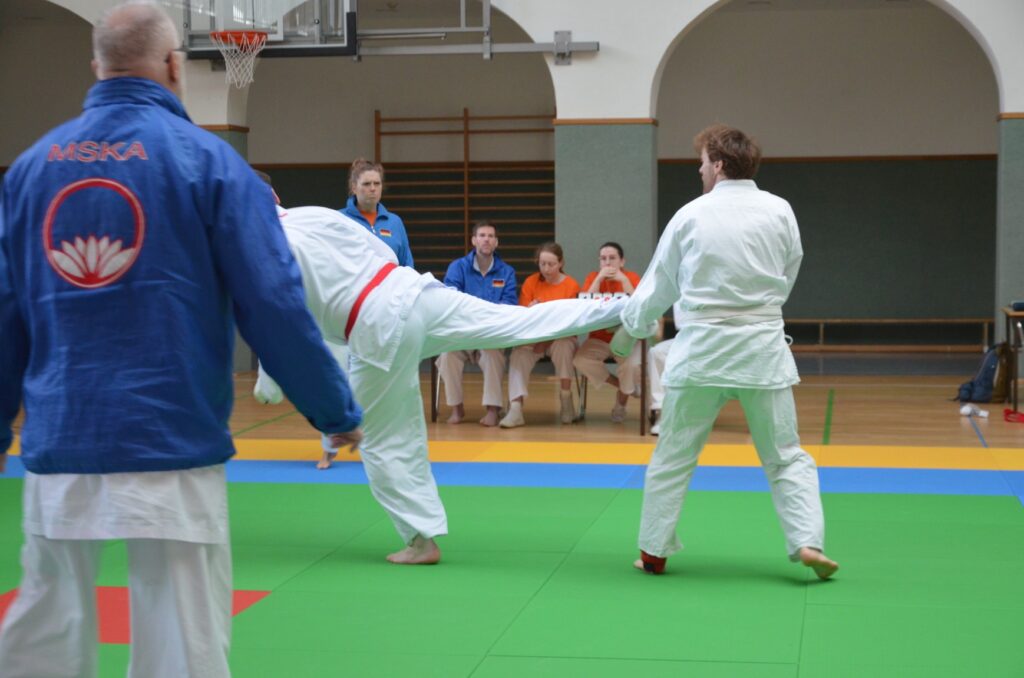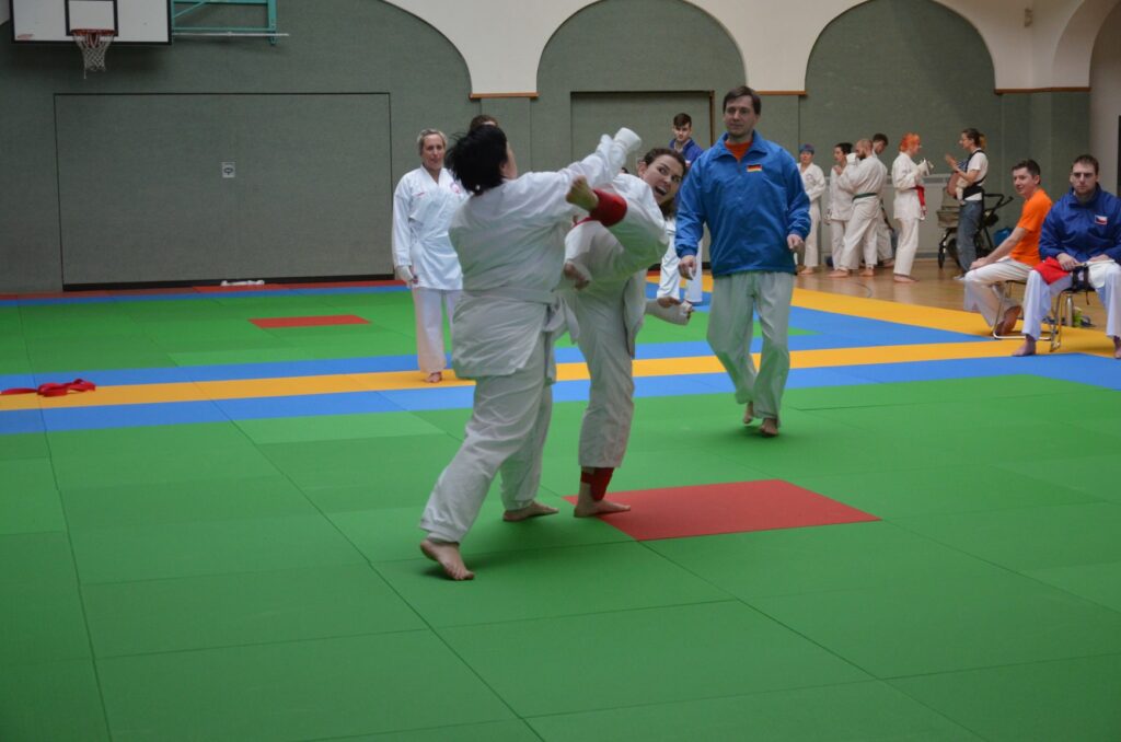 Začátkem dalšího dne, úterým, jsme se pod vedením našeho Matouše Vondráčka, oddíl Emeskai Smíchov, dokázali dostat metrem tam, kam byla potřeba a neodjet až na konec Berlína. Našli jsme osudnou halu a rychle jsme se převlékli do „kimon“.