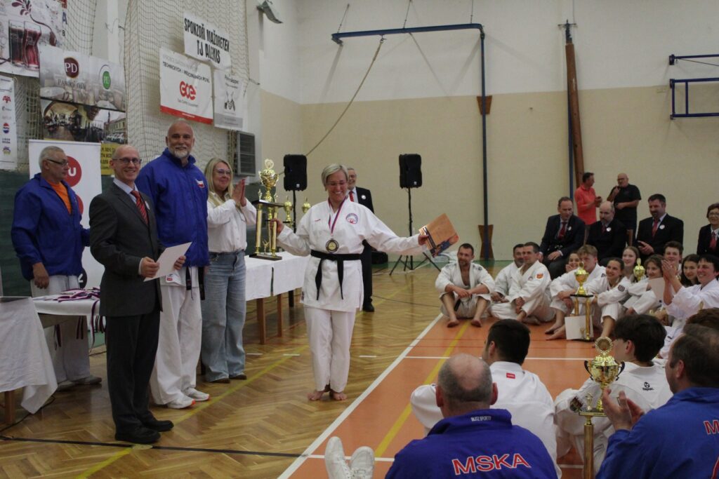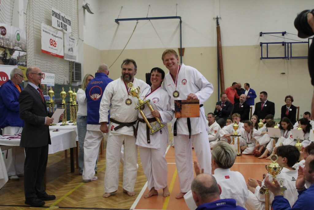 Velkolepé poháry a medaile nemohl předávat nikdo jiný, než náš nejvyšší mistr a koordinátor pro Českou republiku Miroslav Zezulka, DiS., BBA, VI. Dan společně s naším oslavencem mistrem Pavlem Halamou III. Dan.