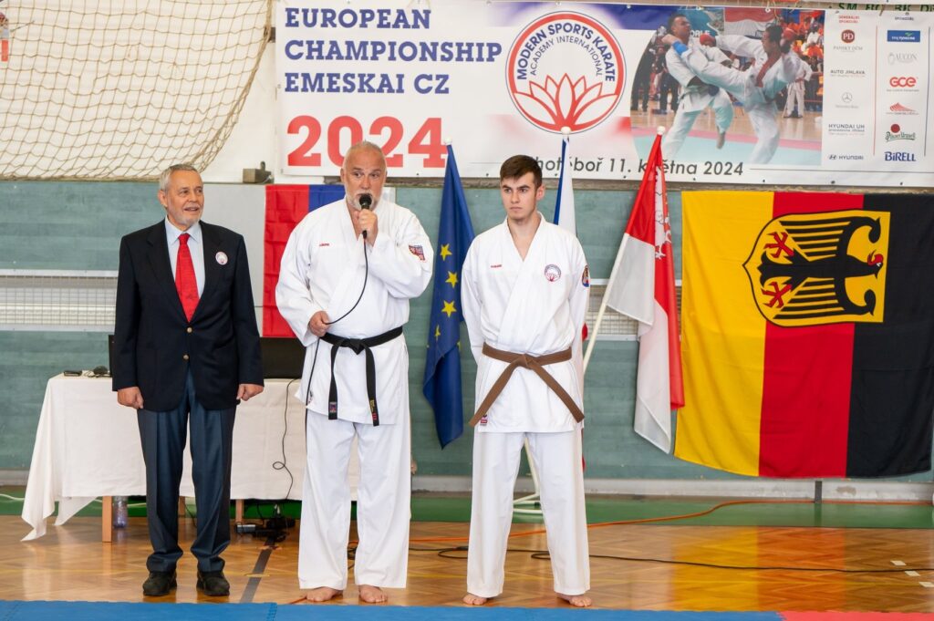 Evropský šampionát v karate, který se konal druhou květnovou sobotu, přesně tedy 11. května 2024, ve městě Chotěboř, byl zároveň na počest a oslavu 60. narozenin našeho mistra Pavla Halamy III. Dan. Na turnaj se sjeli jak bojovníci z celé České republiky, tak i závodníci z Německa a Slovinska. Velkou čest nám prokázal náš velmistr prof. Dr. Rudolf Jakhel, X. Dan a zakladatel školy sportovního karate EMESKAI, který nás také přijel navštívit.