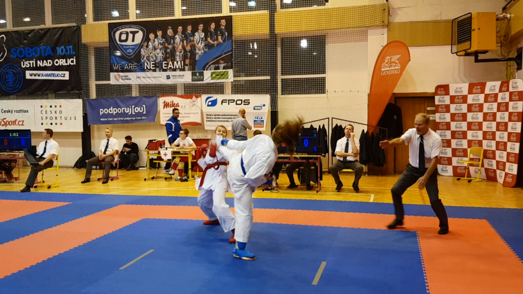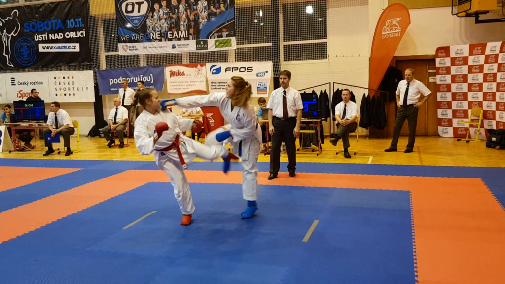 Za zmínku stojí i velice zajímavý zápas mezi naší Hankou Štrumfovou a zkušenou zápasnicí z oddílu Karate klub Lichnice Barborou Kratochvílovou. Tato závodnice sbírá medaile na turnajích již více než 6 let a má z posledních 90 turnajů přes 83 medailí a celkově 1578 bodů. Před rokem, kdy se obě dívky potkaly poprvé, byla Hanka hladce poražena 0:3. Ale je to také již rok, co se naše bojovnice intenzivně připravuje a to pod vedením svého trenéra v Poličském oddíle. Výsledky se již postupně dostavují. Její bodové skóre z externích turnajů je sice zatím 48 bodů ze 4 bodovaných turnajů, ale to neznamená, že by se již teď nemohla stát nepříjemnou překážkou turnajovým favoritkám. A i přes velký rozdíl zkušeností se první výsledky dostavují. Hanka zahájila svůj zápas ráznou útočnou formou a dostala se po dvou bodovaných technikách do vedení 2:0. Soupeřka se konečně vzpamatovala a skóre bylo srovnané. Ve svém tlaku však Hanka nepolevila a podařilo se jí navýšit skóre 5:2 ve svůj prospěch. Soupeřka musela začít více riskovat a zde se podstatně větší zkušenosti vyplatily. Neuhlídaný kop na hlavu a skóre bylo srovnáno na 5:5. Potom se podařilo Hance znovu, a to již potřetí, dostat do vedení navýšit skóre na 6:5. Závěr zápasu byl očima jejího trenéra a kouče doslova infarktový. Bohužel 17 sekund před signálem konce, Hanka opět inkasovala kop na hlavu a výsledné skóre 6:8 již nedokázala ve svůj prospěch otočit. V opravném boji o třetí místo si Hanka chuť vítězit spravila a vcelku hladce porazila polskou závodnici 6:0.